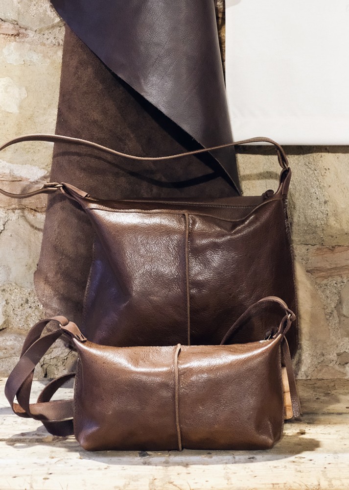 Cada bossa de cuir és exclusiva i única, confecciono íntegrament cada peça al meu petit taller mitjançant processos artesanals, és impossible n'hi hagi dos iguals, intervenen les meves mans i cada part del cuir és únic i irrepetible.