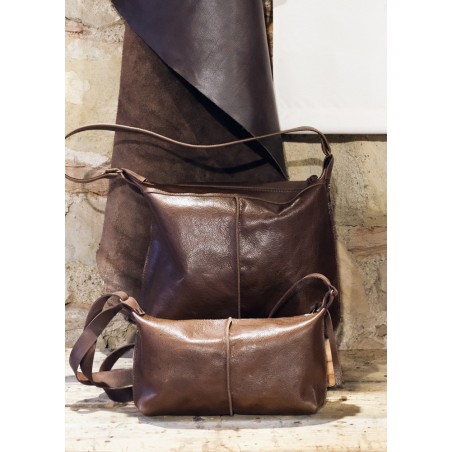 Cada bossa de cuir és exclusiva i única, confecciono íntegrament cada peça al meu petit taller mitjançant processos artesanals, és impossible n'hi hagi dos d'iguals, intervenen les meves mans i cada part del cuir és únic i irrepetible.